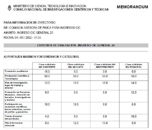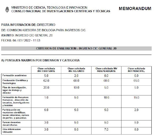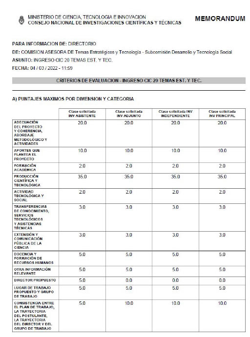 ANEXO I: Memorándums del CONICET con grillas de evaluación
