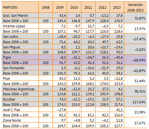 Los números del cesvi, efectivamente, muestran un descenso del robo y hurto automotor en el municipio de Tigre. En todos los años entre 2009 y 2013, se registró una disminución respecto del anterior, excepto en 20127. La reducción acumulada en el período fue del 68,9 por ciento. Estos son los datos a los que los actores del ámbito municipal suelen recurrir, justamente, para mostrar que el sistema Alerta Tigre «funciona». En el cálculo para todos los municipios de la Zona Norte del Conurbano Bonaerense agrupados, las estadísticas muestran un incremento del 17,66 por ciento, lo que da a los resultados de Tigre un valor comparativo adicional.