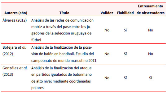 Una vez realizada la búsqueda, siguiendo los criterios de inclusión se seleccionaron un total de once artículos de investigación. Se constató que la totalidad de trabajos reportaron los valores de fiabilidad, mientras la descripción del procedimiento de validación y de entrenamiento de los observadores no siempre fue explicitado (Tabla 1).